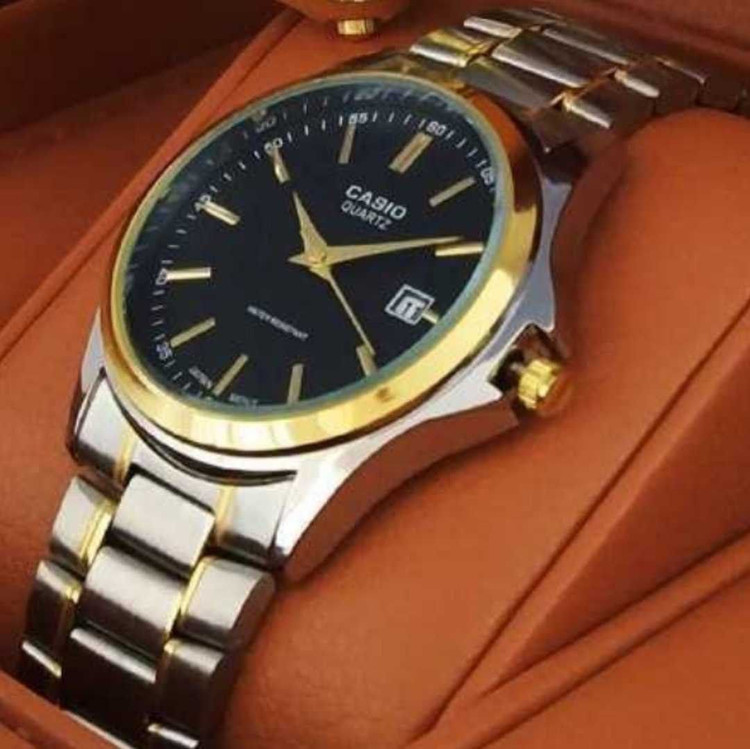 👚نام : ساعت کاسیو بنداستیل زنانه یا مردانه بصورت تک بند نقره ای طلایی صفحه مشکی
