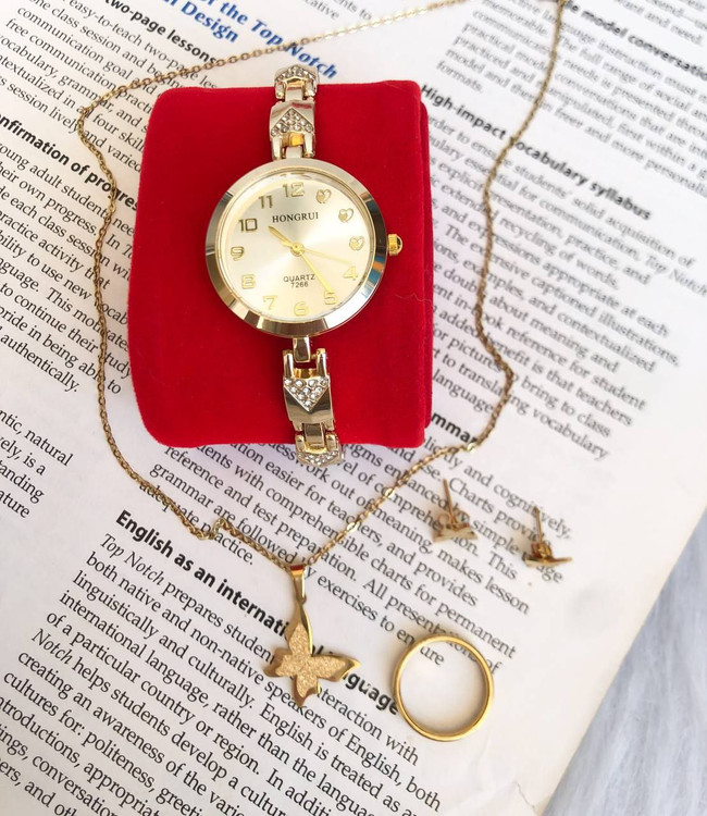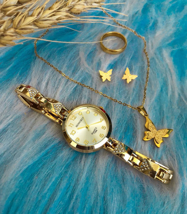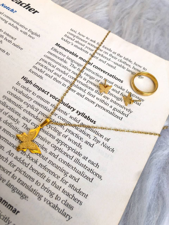 وارداتی از دبی همراه با نیم ست پروانه طلایی و حلقه طلایی