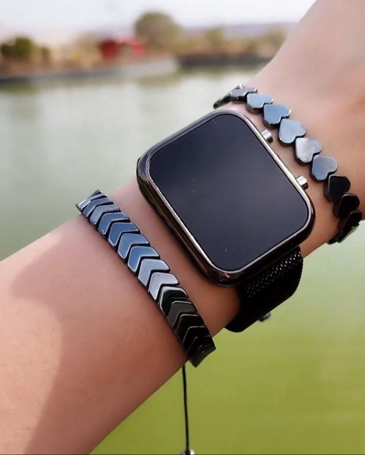 👚نام : ست ساعت ال ای دی بند مگنتی مشکی قاب مشکی