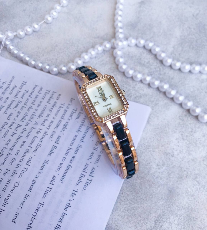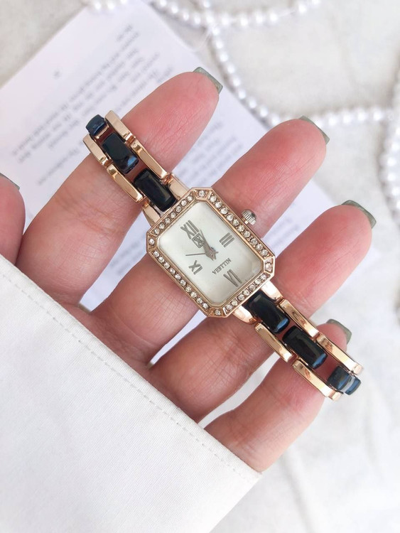 👚نام : ساعت زنانه یا دخترانه طرح سرامیکی ظریف مستطیلی مشکی رزگلد